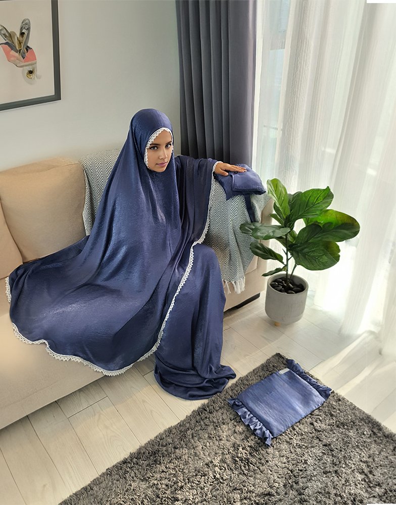 Set doa yang indah dan elegan untuk Muslimah. Itu terbuat dari santorini sutra dan fitur desain renda yang indah . Set mencakup semua barang yang diperlukan untuk doa, kepala sajada, dan kantong yang rapi. Bahan serat sutra alami nyaman dipakai dan memberikan nuansa mewah.