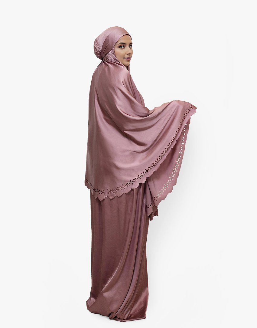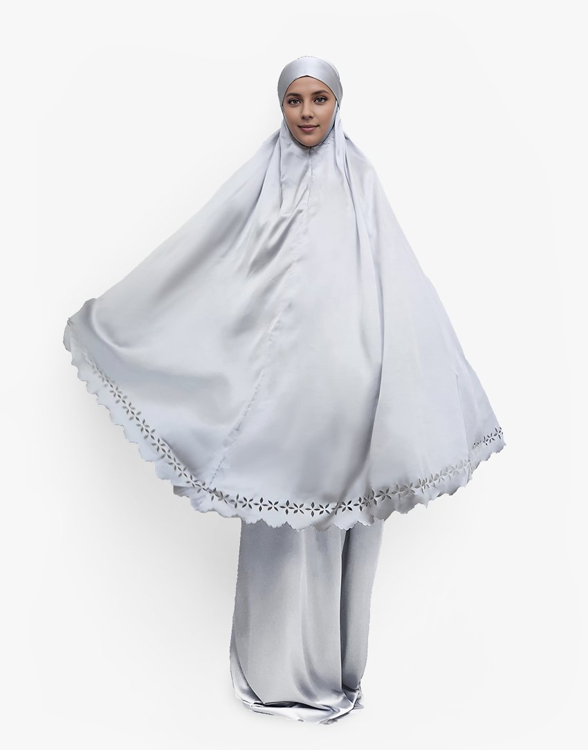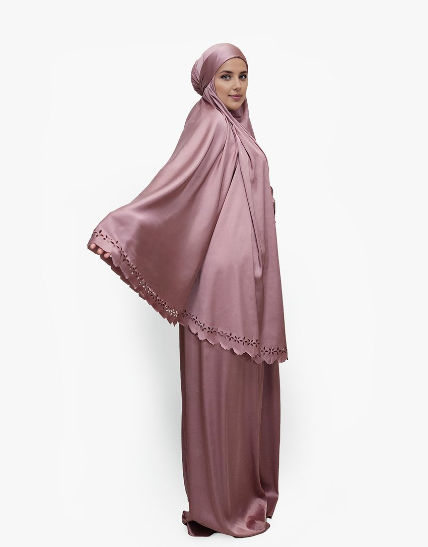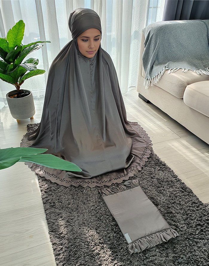 Set doa Anda adalah pakaian yang indah dan elegan yang dirancang untuk wanita Muslimah. Ini terbuat dari sutra halus premium dan fitur desain laser bunga. Set mencakup semua barang yang diperlukan untuk doa, termasuk dua bagian yang menutupi kedua bagian tubuh. Potongan atas menutupi kepala, leher, dan bagian atas tubuh dan rok yang dimulai di atas pinggang ke bawah menutupi kaki.